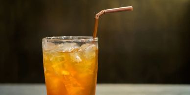 A selection of refreshing drinks, including sodas, tea, and juices.